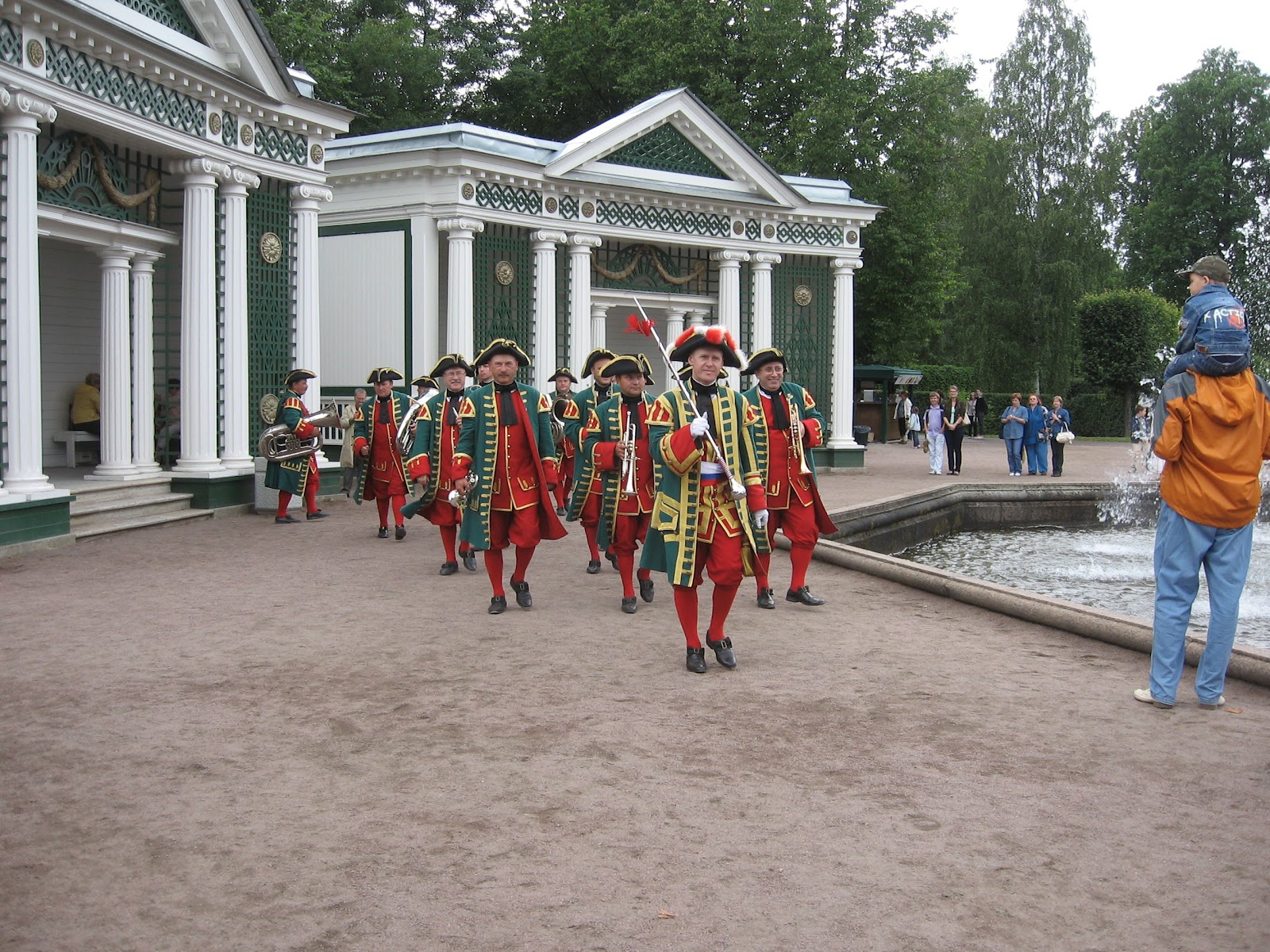 In apologies for this being put up late, here is a slightly over-the-top (and badly-filmed on an inexpensive camera) video of the opening ceremony at Peterhof Gardens. There are something like 300+ fountains in the entire park, and 100+ of them are in one location: the display directly in front of the castle. This is what we got up at 8am to try to catch; apparently the people in front of us had gotten up at 6 to be there at 8 so they could get front-row seats for the 10:30 commencement. It's pretty, but not enough to wake up at 6 am, in my opinion. Here goes!